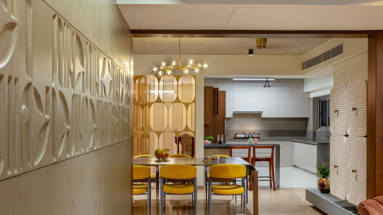 Upon entering the apartment, visitors are greeted by a stunning mural of the God Shriniathji. This mural reflects the family's strong faith in religion and creates a welcoming and homely atmosphere.