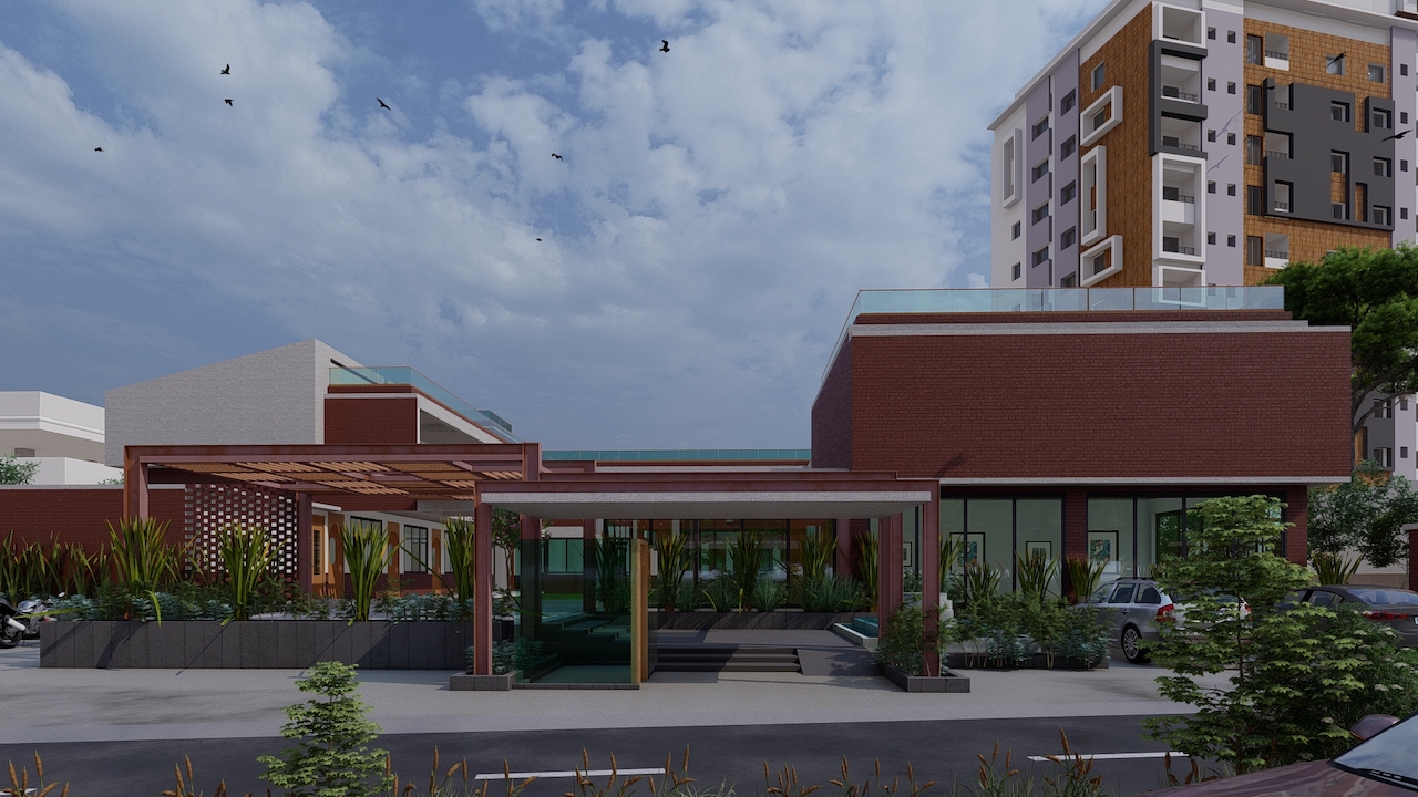 Our architecture firm was presented with a unique challenge - to design a preschool in a densely populated area surrounded by vacant plots and a petrol pump. We approached this project with a direction-responsive strategy, taking into account the orientation of the sun and the client's preference for basic Vastu principles.
