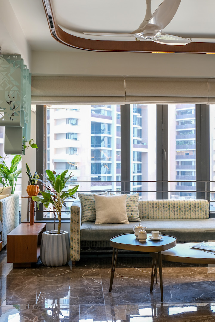 The living and drawing room area posed a unique challenge due to its dark flooring. However, we embraced this challenge as an opportunity for artistic exploration. By deftly playing with color combinations on the walls, we were able to create a visual dialogue between the dark flooring and the lighter shades of the walls and ceiling. Through this interplay, we sought to illuminate the room's essence, symbolizing the interdependence of light and darkness in our lives.